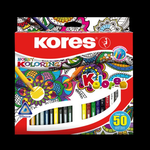 Novinkou jsou pastelky Kores Kolores Mandalas, které jsou ideální pro vybarvování antistresových omalovánek a mandal. Vynikají snadným jemným a plynulým vedením pastelky a jejich barvy jsou přirozeně intenzivní a jasné díky vysokému obsahu pigmentu. Jsou vyrobeny z vysoce kvalitního dřeva, snadno se ořezávají, nelámou se a navíc mají rámeček pro vepsání jména. Pastelky Kores Kolores Mandalas nabízejí dětem 50 barev. Cena 250 Kč.